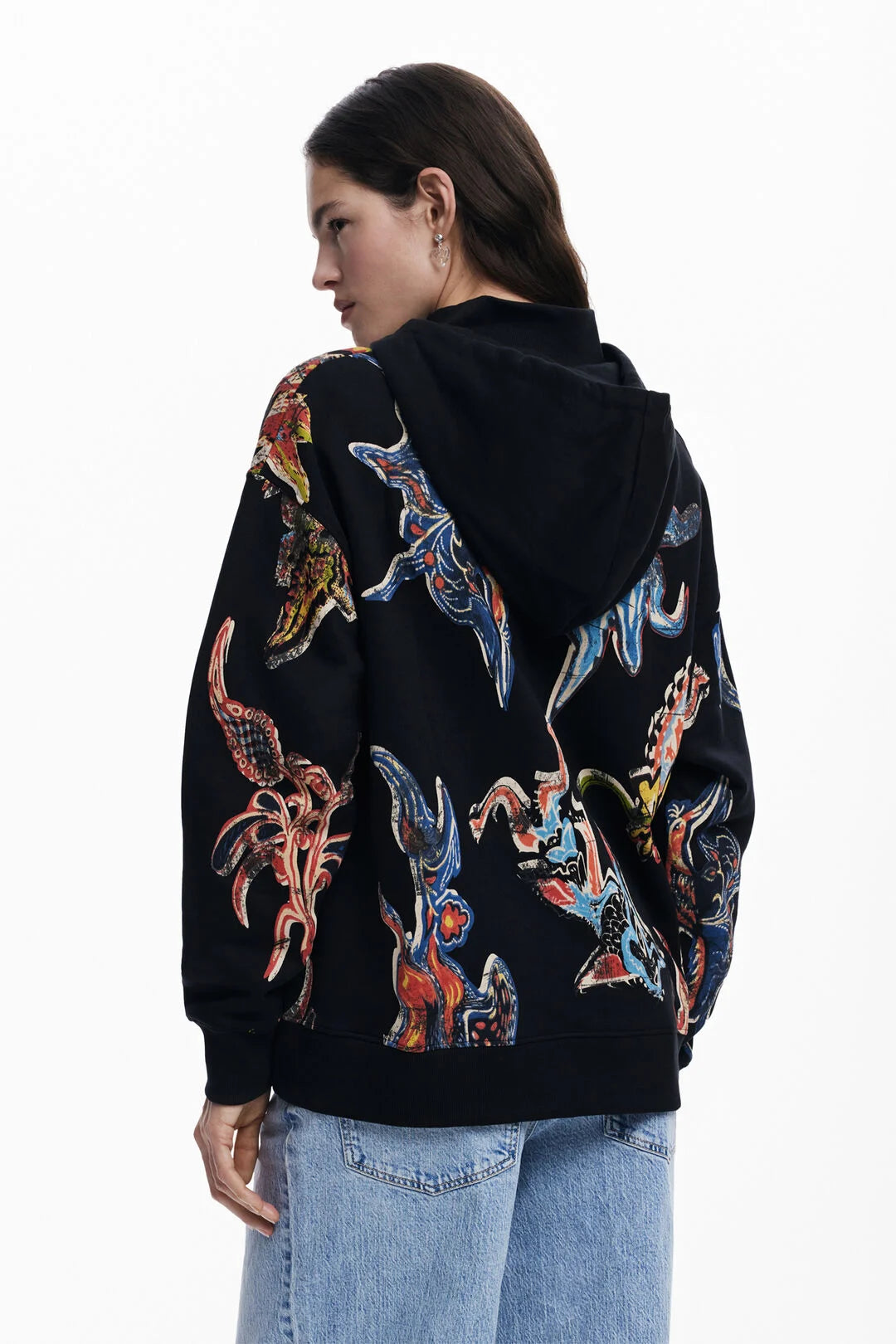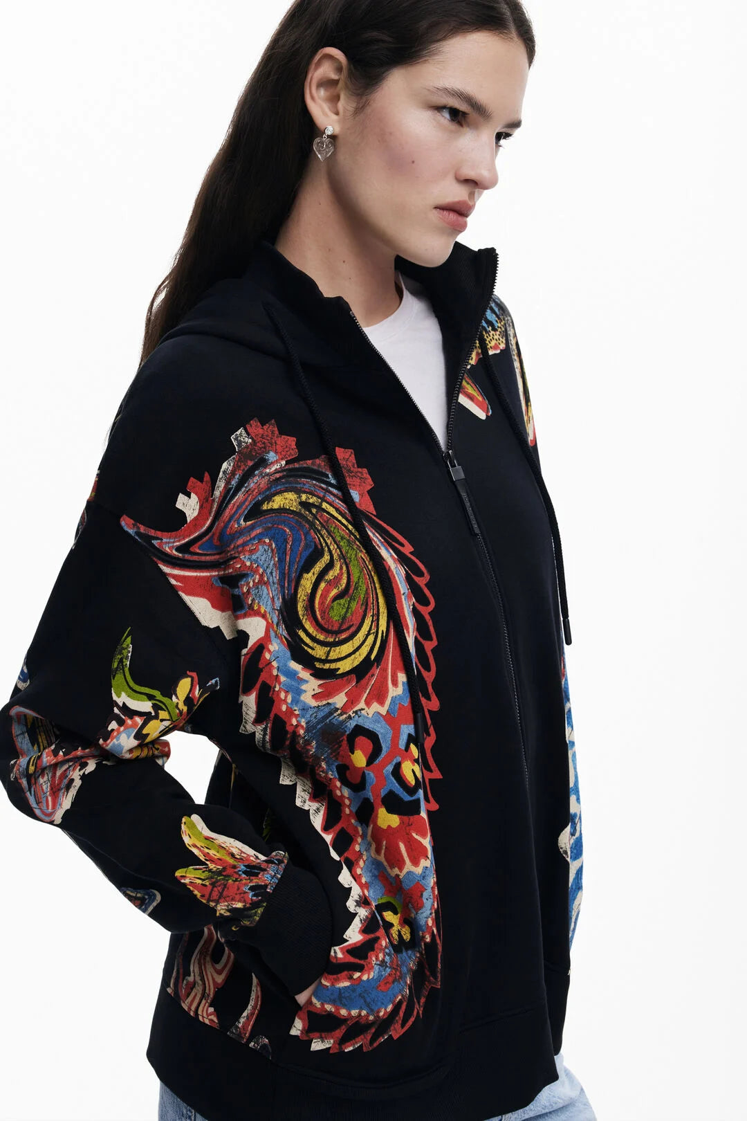 Long-sleeve hoodie with zipper closure, paisley print designed by Monsieur Christian Lacroix.